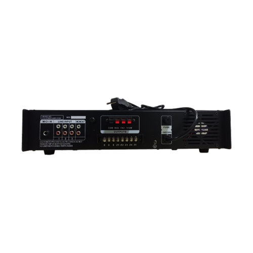 يأتي المضخم مزودًا بمجموعة واسعة من الخيارات، بما في ذلك BL-MEMORY، بطاقة SD، منفذ USB، AUX، راديو، ومدخل ميكروفون، مما يتيح لك تشغيل الموسيقى والإعلانات بسهولة وسلاسة. يمكن التحكم في مستوى الصوت في 5 مناطق مختلفة، مما يوفر تجربة صوتية متوازنة ومتكاملة.