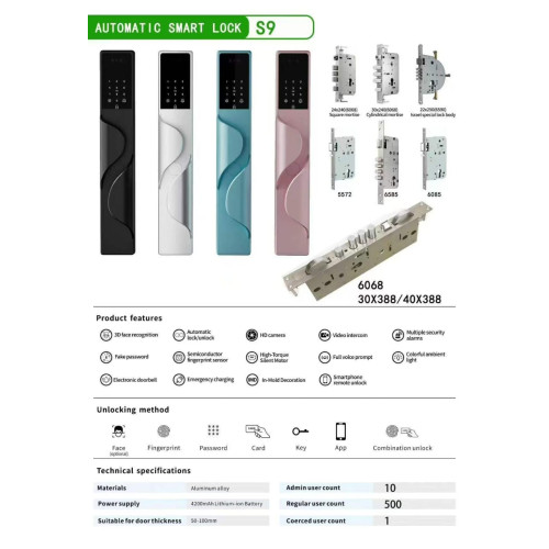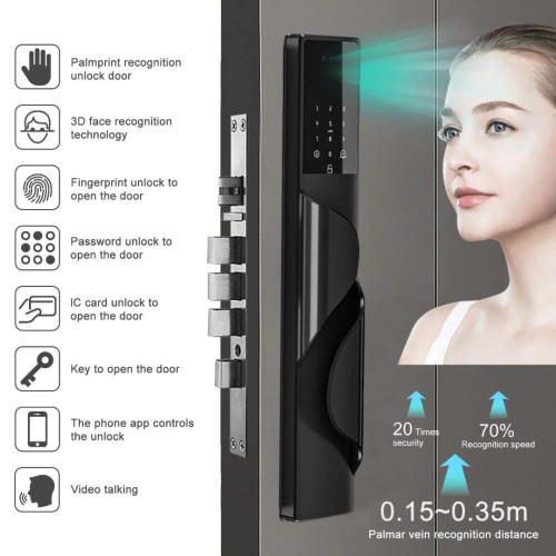| Unlock by | Mobile application, Face ID, Fingerprint, Palm print, Password, Card, Manual key, Amazon Alexaa |