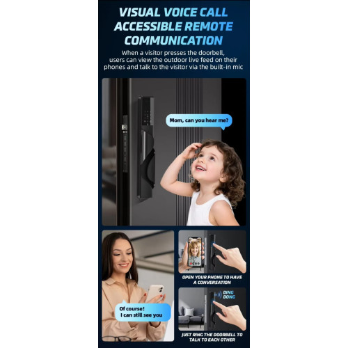 Additionally, the lock features a built-in intercom system, enabling you to identify and communicate with visitors, and remotely unlock the door via the mobile app from anywhere in the world.